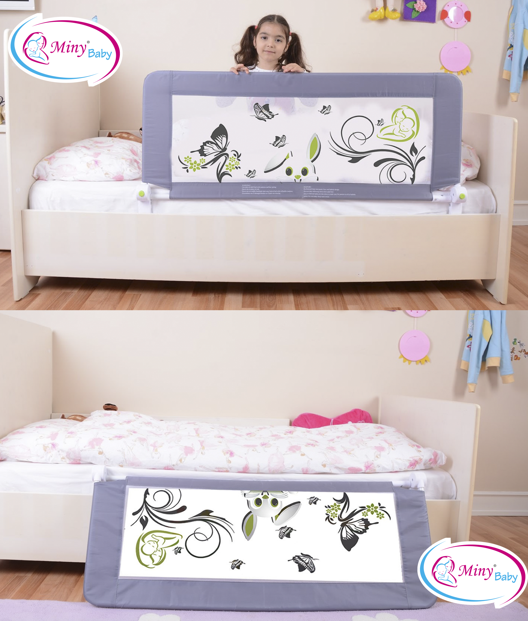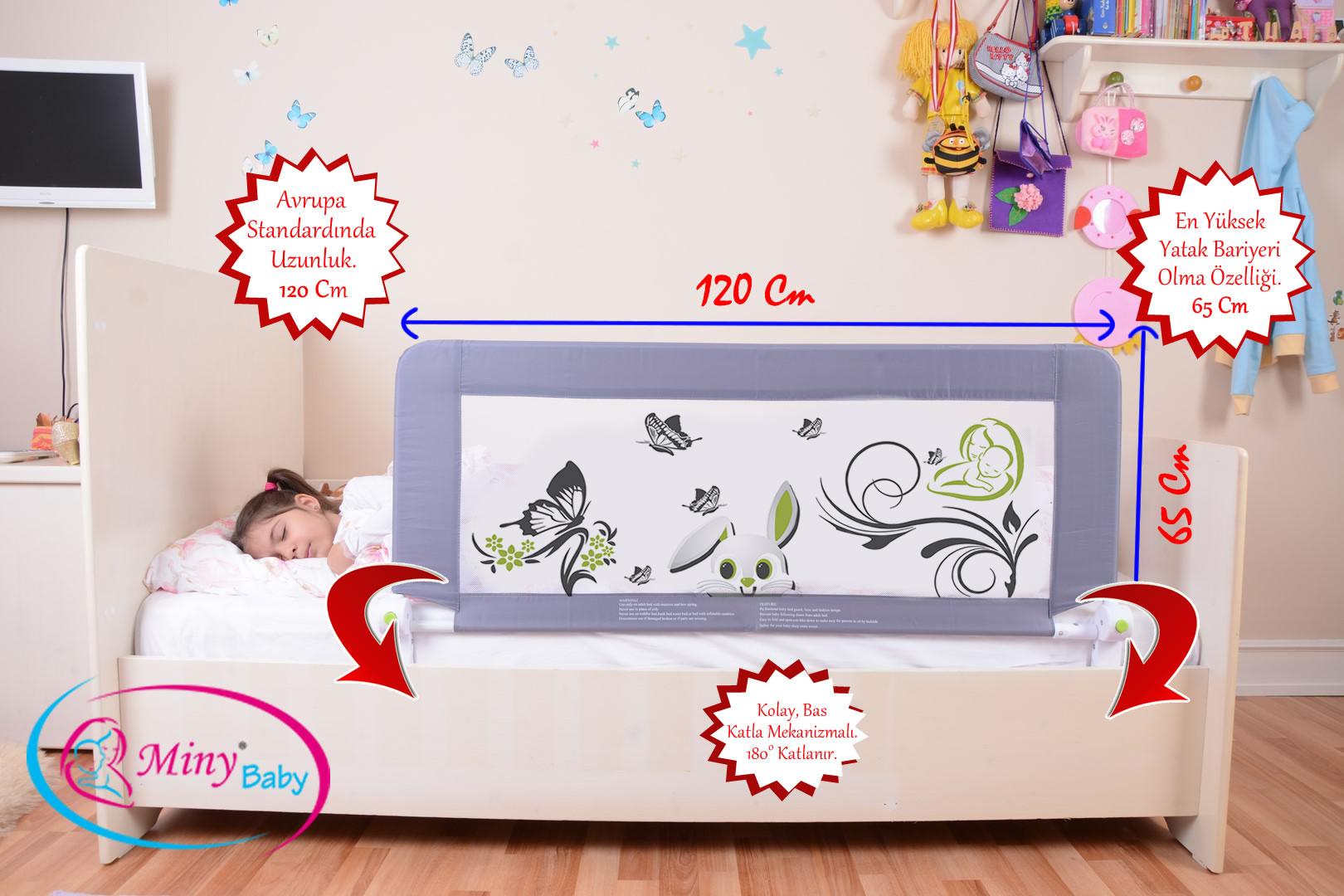 * Tüm Yataklara uyumludur. Bazalı yataklarda, çek yatlarda, ebeveyn yataklarında katlanabilme özelliği sayesinde çocuğunuzun yataktan inmesini kolaylaştırır. (Karyolalı Yataklarda katlanabilme özelliği kullanılamaz.)